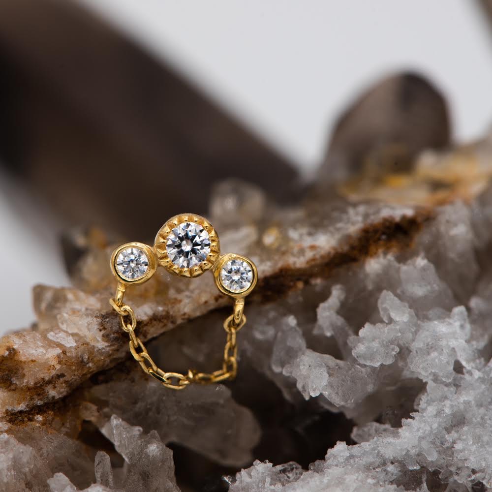 A classic piece in 14kt gold, suitable for many placements on the ear for healed piercings.