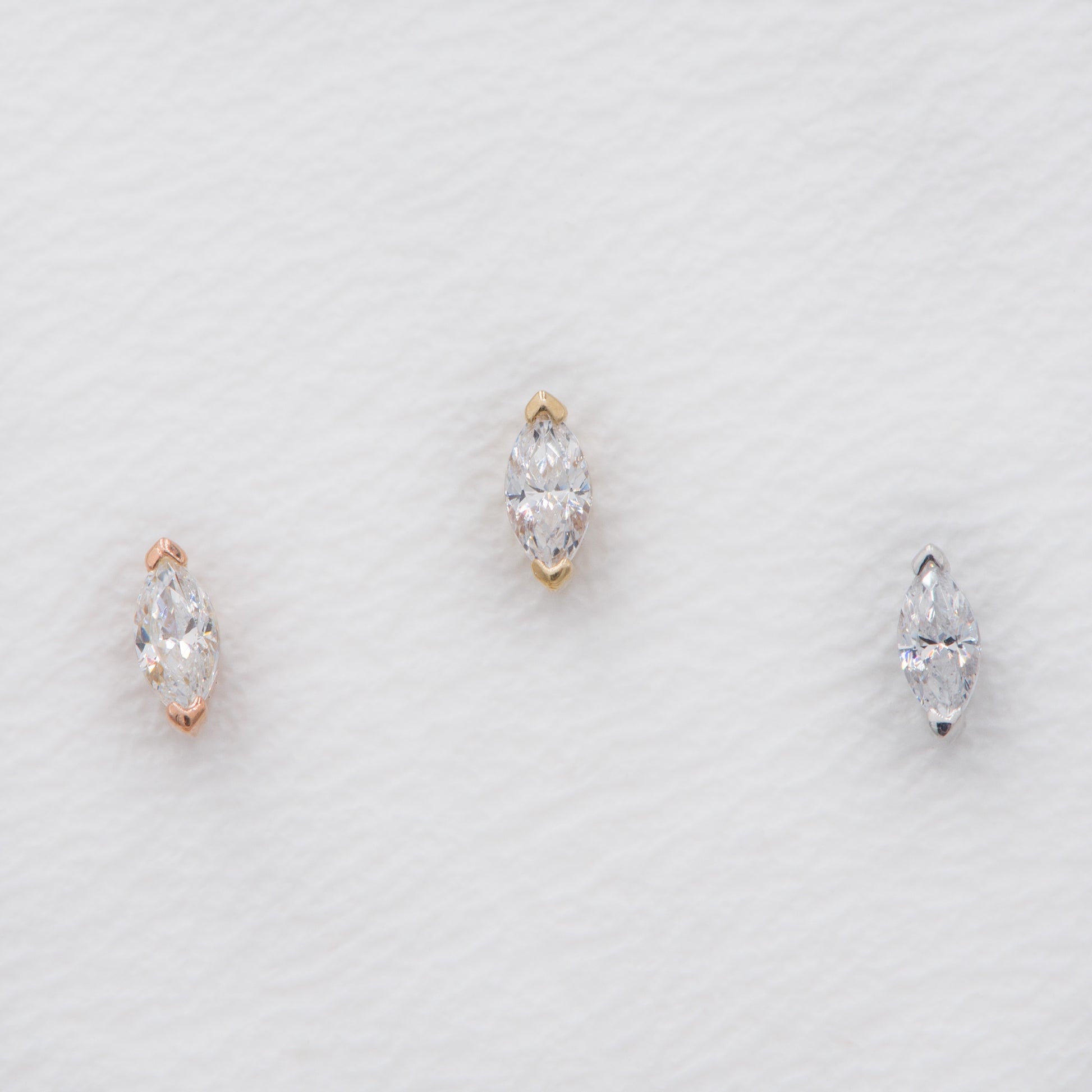 This piece contains the decorative front only, with a threadless mechanism and a titanium pin. Backing post sold separately.