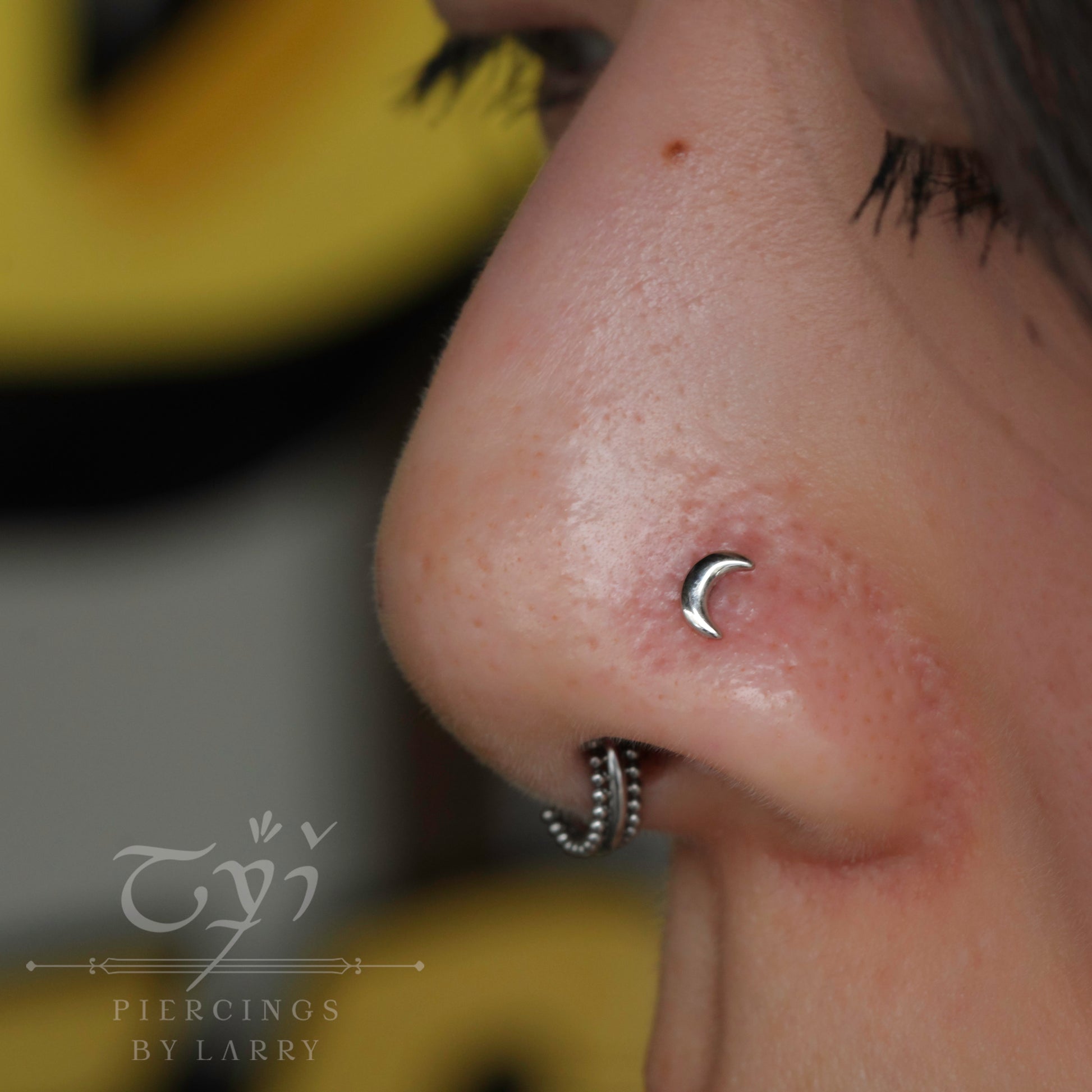 This piece contains the decorative front only, with a threadless mechanism and a titanium pin. Backing post sold separately.