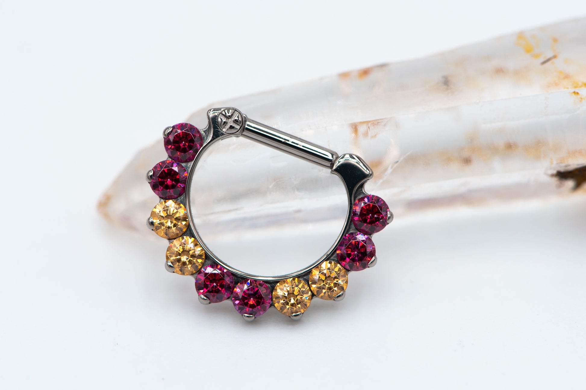 - Prong Set Fuchsia and Amber Swarovski Gems