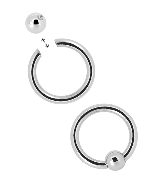 A captive bead ring (CBR) is a circular piece of jewelry that holds a small bead in place using tension. The bead has tiny dimples that sit snugly against the ring’s ends, keeping it secure while allowing for easy removal and reinsertion when needed.
